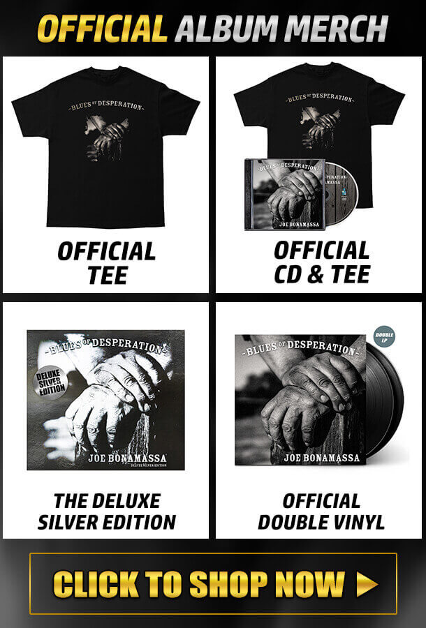Packed with unparalleled musicianship and teeming with the most enthralling collection of songs in Bonamassa's career, Blues of Desperation is guaranteed to knock out critics and fans alike. By exceeding his own vertiginously high artistic goals, Bonamassa is bound to shatter all other expectations with this record and reach new audiences – no mean feat when you continue his astonishing track record of hits now includes 15 #1 Billboard Blues Albums (more than any other artist in history). 2014's Different Shades of Blue debuted at #8 on Billboard's Top 200 Chart, making it his highest charting album, his first top 10 and accounting for his biggest sales week ever. In 2014, the guitarist received his first-ever Grammy nomination (for Best Blues Album) for the album Seesaw, his second collaboration with blues singing star Beth Hart, and was named 2014's Billboard Blues Artist of the Year.